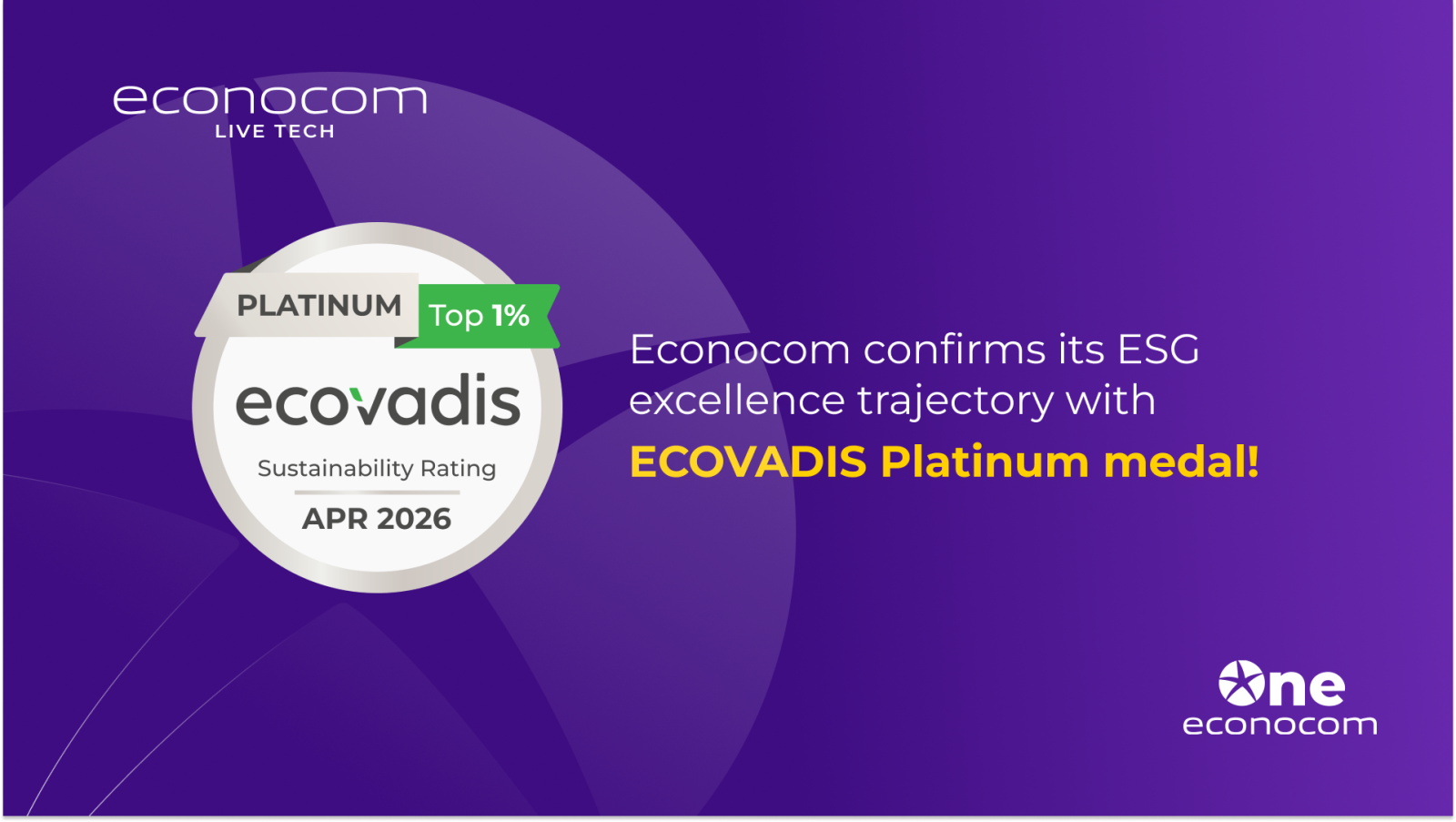 Econocom announces that it has been awarded the EcoVadis Platinum Medal, the highest distinction granted by the world’s leading ESG ratings provider.