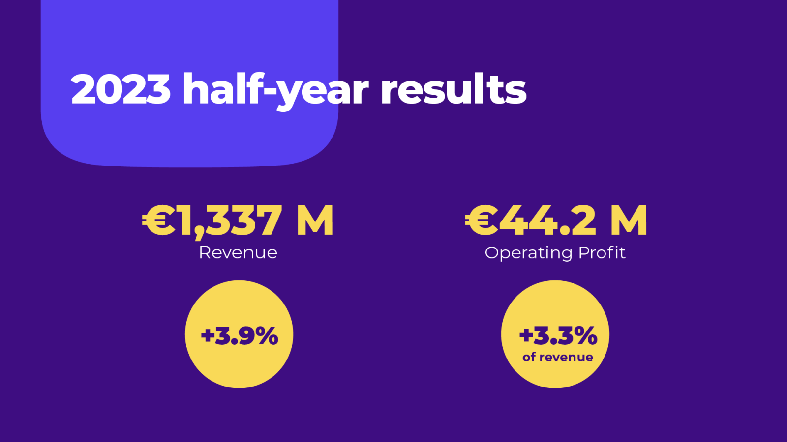 Net financial expense, impacted mainly by the rise in interest rates (for €3.5 million), amounts to €9.7 million. After a tax expense of €8.4 million and a net profit from discontinued operations of €4.6 million, following the disposal of a P&S business classified as a discontinued operation in 2022, consolidated net profit was €24.7 million for the first half of 2023.