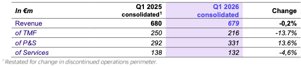 As of 31 March 2026, Econocom posted revenue of €679 million year-to-date, stable on a reported basis but down 1.9% organically, compared to Q1 2025. This performance reflects a complex environment, following a strong first quarter in 2025.