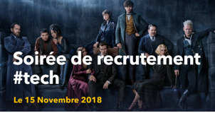 Venez nous rencontrer lors d’une soirée unique de recrutement le 15 novembre 2018 à Paris, à l’occasion de la sortie du 2ème opus de la saga « Les animaux fantastiques ». Sortez vos baguettes !