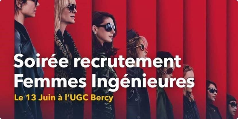Vous êtes étudiante en école d’ingénieur, niveau Bac + 4/5 et vous êtes à la recherche d’un emploi ? Venez nous rencontrer lors d’une soirée de recrutement pas comme les autres le 13 juin 2018 à Paris, à l’occasion de la sortie du film Ocean’s Eight.