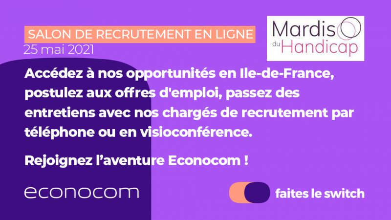 Econocom sera présent le 25 mai 2021 pour la prochaine édition du salon vituel JobinLive dédié aux personnes en situation de handicap en région parisienne