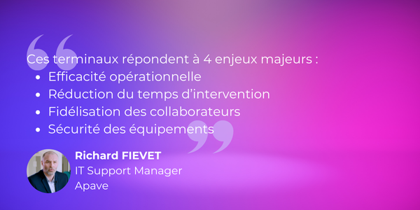 Notre maîtrise de l'ensemble de la chaîne de valeur, nous permet de proposer au groupe Apave un écosystème mobile clé en main et à ses collaborateurs des outils adaptés à leurs usages.