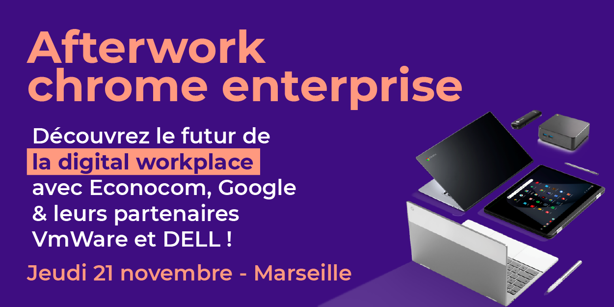 Fort de son expertise dans l’intégration et la distribution des solutions Chrome Enterprise, Econocom se positionne aujourd’hui comme le premier partenaire Google dans la distribution des Chromebooks en entreprise en France. Et chaque étape de ce roadshow sera l'occasion pour les professionnels de découvrir le futur de la digital workplace autour d’un afterwork.