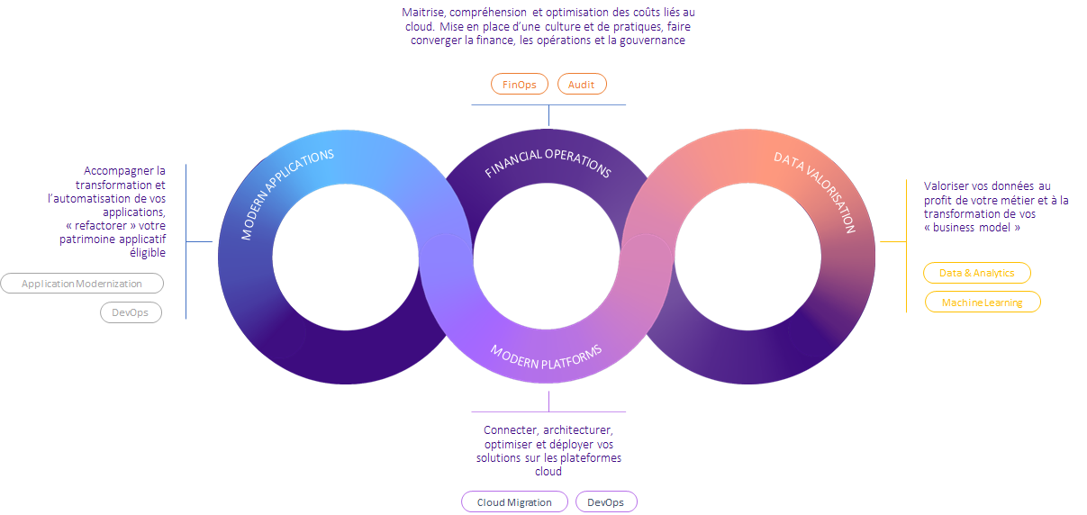 Nous pensons notre offre d’une manière globale et intégrée entre applications, plateformes et données pour adresser tous vos enjeux numériques.